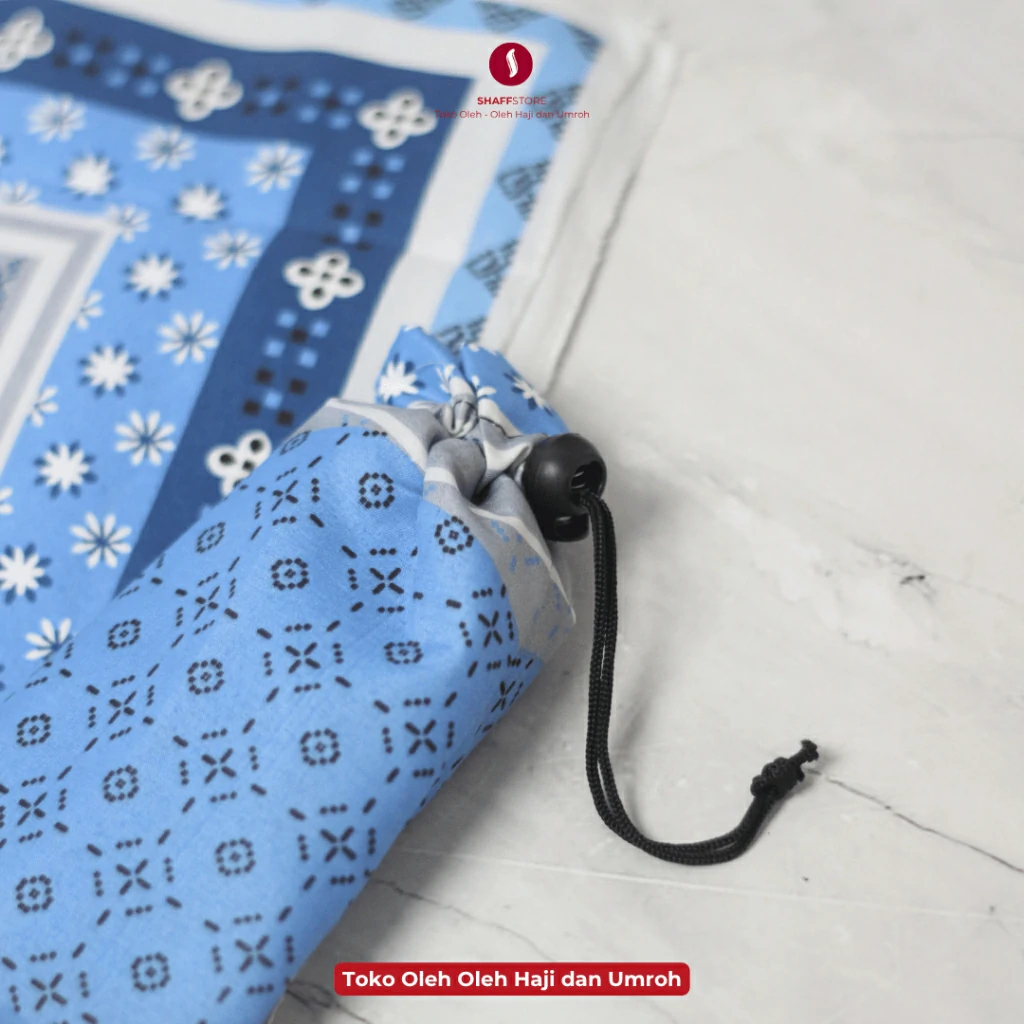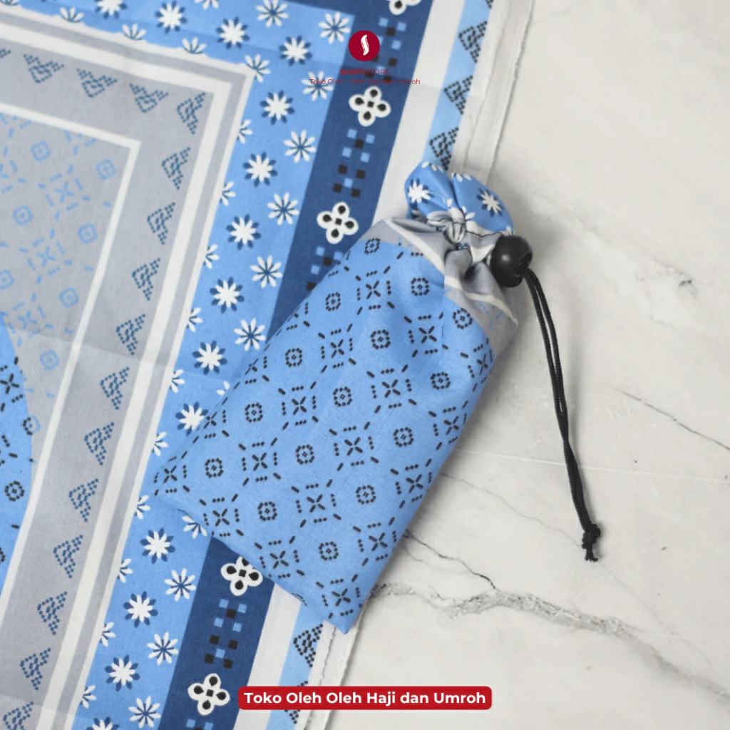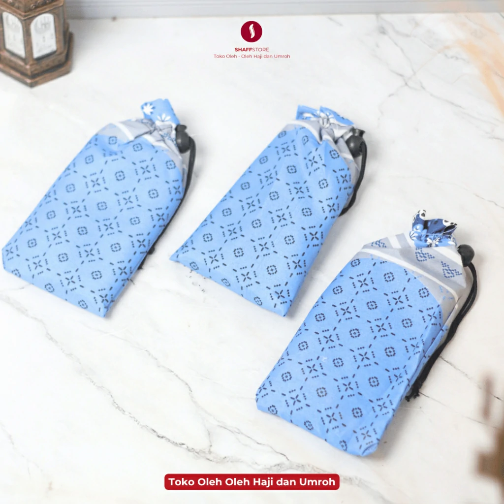 Sajadah Lipat dibungkus dengan pouch serut terlihat lebih cantik. Sangat cocok dijadikan souvenir oleh-oleh haji atau oleh-oleh umroh